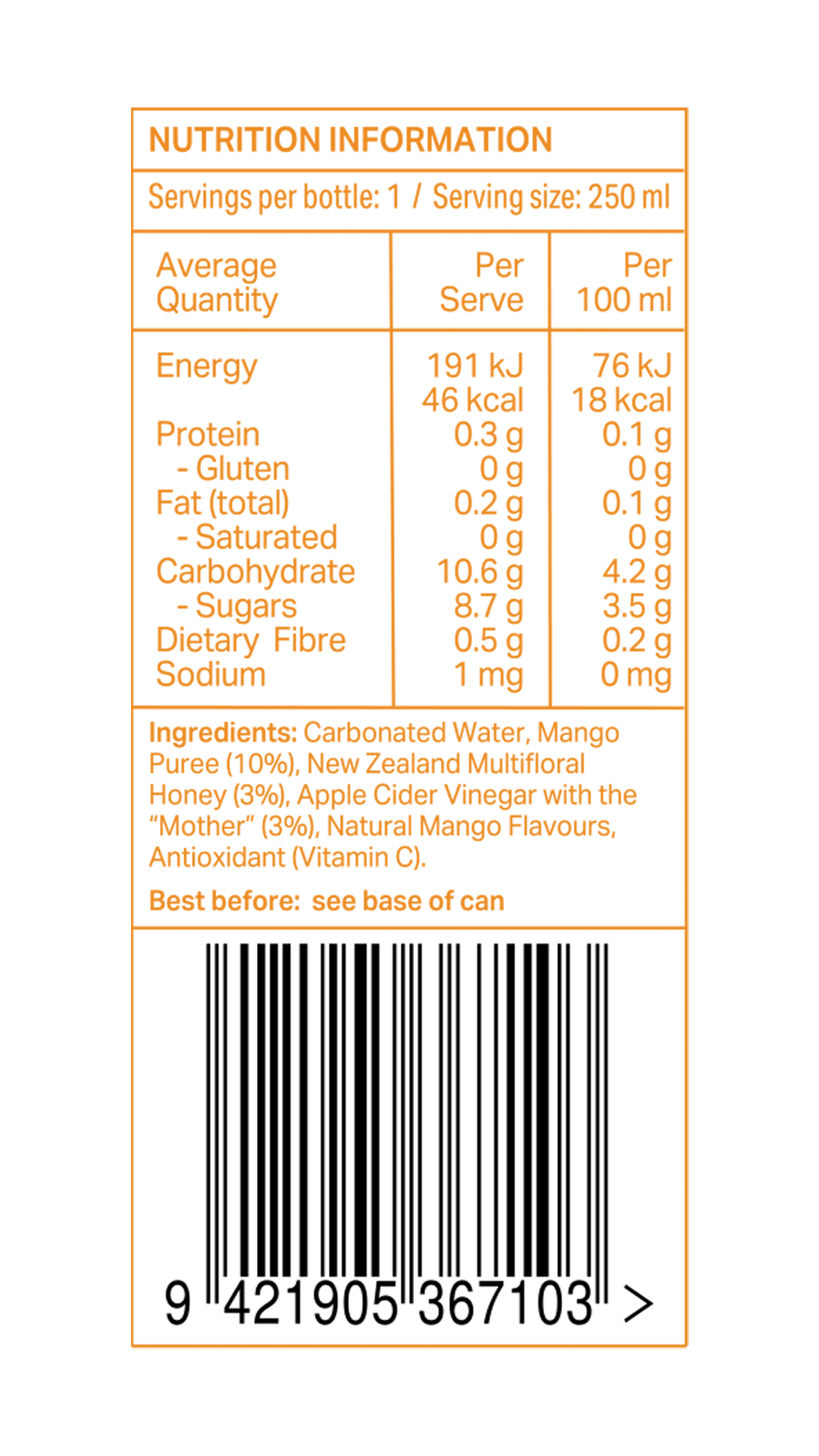 Made with real mango (imperfect fruit included), NZ honey, and organic ACV — nothing artificial, nothing fake, just naturally delicious refreshment.